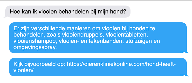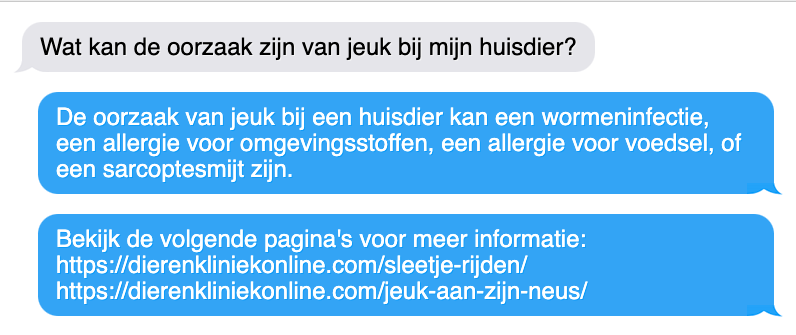Ben je benieuwd naar de mogelijkheden van Machine Learning en ChatGPT voor jouw bedrijf? Neem dan contact op met de experts van dit experiment en bekijk hun andere Machine Learning cases. En vergeet niet om een kijkje te nemen op de website van Dierenkliniekonline.com als je huisdieren hebt die wel wat deskundige hulp kunnen gebruiken.